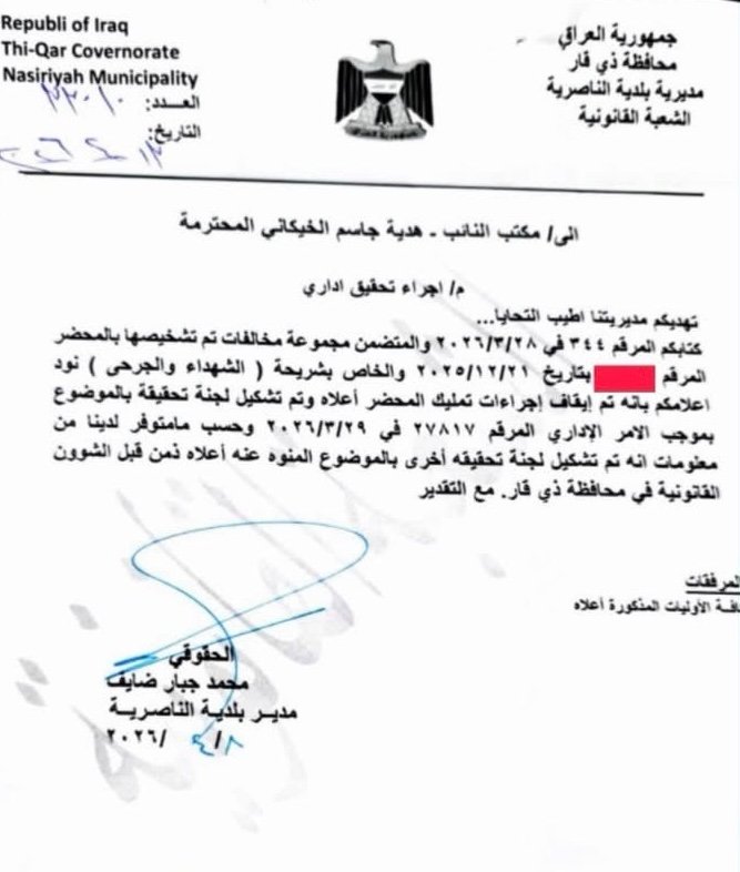 أصدرت محكمة استئناف ذي قار قرارًا بإيقاف محضر تمليك لعقارات مميزة تتجاوز قيمتها (15) مليار دينار عراقي باسم شريحة الشهداء والجرحى، لمخالفاته الإدارية والتلاعب بالمال العام.